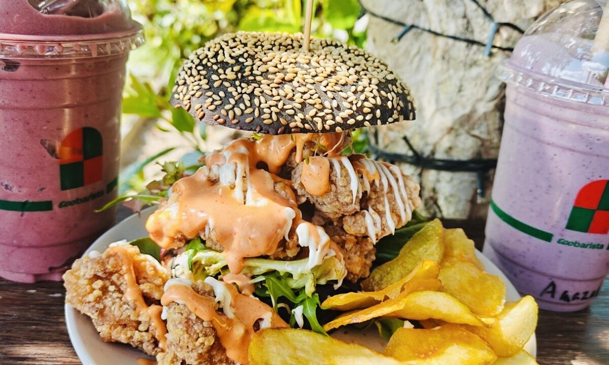 バーガーのね、真っ黒なチャコールバン(食用の活性炭入りのバンズ)もね、美味しいんですよ!