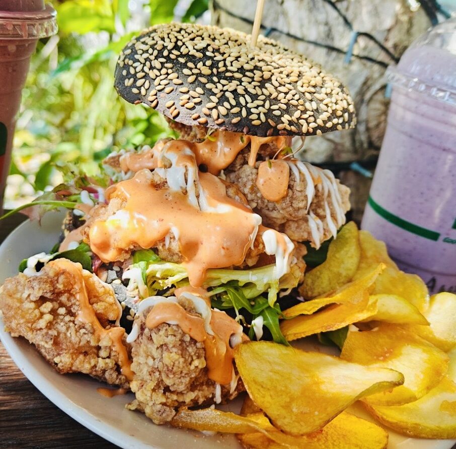 オーストラリアでバーガーを頼むとチップス(ポテト)は別なことも多いんですが、KUDOさんではヘルシーなhouse-made potato chips🥔がついています♪